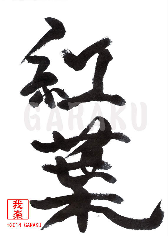 2014年11月22日 / 最終更新日 : 2017年5月11日 Katsumi Ito 二文字 デザイン書道:作品006「紅葉」【今日の書】「作品1578:清明」【昨日の書】「作品1577:鞦韆」 紅葉【読み】 もみじ 【意味】 主に落葉広葉樹が落葉の前に葉の色が変わる現象のこと。 ただし、読んで字の如く、葉の色が赤変することだけを紅葉(こうよう)と呼ぶ場合もある。【006】「紅葉」 関連する作品デザイン書道:作品036「秋桜」デザイン書道:作品085「椛」デザイン書道:作品011「彼岸花」デザイン書道:作品009「松茸」デザイン書道:作品008「百合」デザイン書道:作品1569「土筆」 Tags: 2014, デザイン書道, 植物