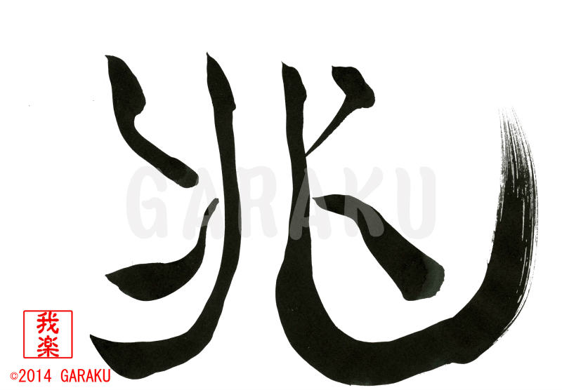 2014年12月29日 / 最終更新日 : 2017年5月12日 Katsumi Ito 一文字 デザイン書道:作品121「兆」【今日の書】「作品1578:清明」【昨日の書】「作品1577:鞦韆」 兆(きざ-し)【読み】 チョウ・きざ(す)・きざ(し) 【意味】 物事が起こりそうな気配。 兆候。【121】「兆」 関連する作品デザイン書道:作品050「鮪」デザイン書道:作品046「涼」デザイン書道:作品045「侍」デザイン書道:作品043「未」デザイン書道:作品055「夢」デザイン書道:作品049「華(豪華版)」 Tags: 2014, デザイン書道, 一文字
