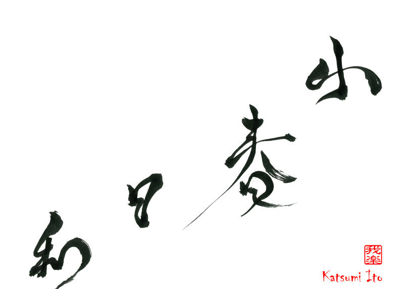 2016年11月20日 / 最終更新日 : 2017年5月7日 Katsumi Ito 2016 デザイン書道:作品1224「小春日和」【今日の書】「作品1578:清明」【昨日の書】「作品1577:鞦韆」 小春日和【読み】 こはるびより 【意味】 晩秋から初冬にかけての暖かく穏やかな晴天である。 移動性高気圧に覆われるなどして発生する。 冬の季語である 出典:ウィキペディア【1224】「小春日和」 関連する作品デザイン書道:作品1389「笑門来福」デザイン書道:作品1387「風光明媚」デザイン書道:作品1384「夢幻泡影」デザイン書道:作品1382「唯一無二」デザイン書道:作品1377「勇気凛凛」デザイン書道:作品1371「山紫水明」 Tags: 2016, デザイン書道, 四文字熟語