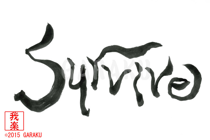 2015年2月4日 / 最終更新日 : 2017年5月12日 Katsumi Ito 2015 デザイン書道:作品189「Survive」【今日の書】「作品1578:清明」【昨日の書】「作品1577:鞦韆」 Survive【読み】 サヴァイブ 【意味】 (他の人よりも)「長生きする」、「生き残る」といった意味の動詞。【189】「Survive」 関連する作品デザイン書道:作品446「Star」デザイン書道:作品241「Burning」デザイン書道:作品212「Valentine’s」デザイン書道:作品509「神無月」デザイン書道:作品457「長月」デザイン書道:作品456「夏」 Tags: 2015, デザイン書道, 英語