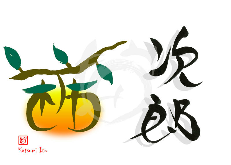 2017年10月26日 / 最終更新日 : 2017年10月26日 Katsumi Ito 果物 デザイン書道:作品1947「次郎柿」次郎柿【読み】 じろうがき 【意味】 治郎柿 (じろうがき) は甘柿の品種の1つである。 完全甘柿で、富有より果汁が少なく、大きく歯応えのある果実を着ける。 愛知県と静岡県で、全体の8割を生産しており、愛知県豊橋市が生産量日本一である。 出典:ウィキペディア【1947】「次郎柿」 関連する作品デザイン書道:作品3154「梨」デザイン書道:作品3138「奥の細道」デザイン書道:作品3137「柿」デザイン書道:作品2994「蜜柑」デザイン書道:作品2992「金柑」デザイン書道:作品2988「柚子」 Tags: 果物