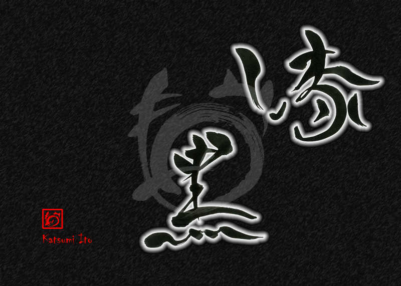 2017年11月23日 / 最終更新日 : 2017年11月23日 Katsumi Ito 伝統色 デザイン書道:作品2027「漆黒」漆黒【読み】 しっこく 【意味】 色名の一つ。 黒漆塗りの漆器のように、つややかな黒色をさす。 純黒じゅんこくと表現されることもあり、純粋な黒をさしている。 出典:コトバンク【2027】「漆黒」 関連する作品デザイン書道:作品1059「黄櫨染」デザイン書道:作品579「帰り花」デザイン書道:作品2238「海苔」デザイン書道:作品1915「玉子」デザイン書道:作品2626「体育の日」デザイン書道:作品2189「秋」 Tags: 伝統色