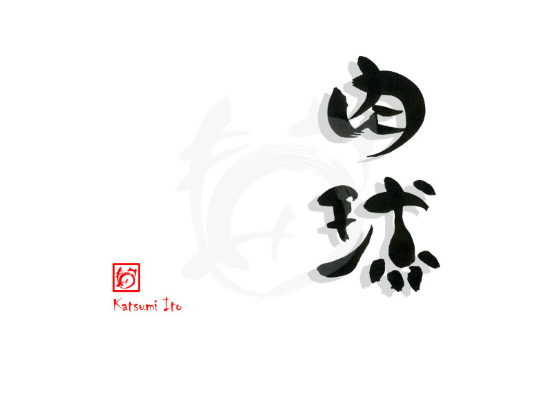 2017年11月29日 / 最終更新日 : 2017年11月29日 Katsumi Ito 動物 デザイン書道:作品2040「肉球」肉球【読み】 にくきゅう 【意味】 肉球とは、主にネコ目の動物の足裏部に見られる、盛り上がった無毛の部分の名称。 正式には蹠球と言うが、肉球の一部を指す「掌球」との混同を避ける目的もあり一般的に肉球と俗称される。 出典:ウィキペディア【2040】「肉球」 関連する作品デザイン書道:作品3158「百日紅」デザイン書道:作品3074「桜」デザイン書道:作品3073「椿」デザイン書道:作品2382「川獺」デザイン書道:作品2240「珊瑚」デザイン書道:作品2232「猫?」 Tags: 動物