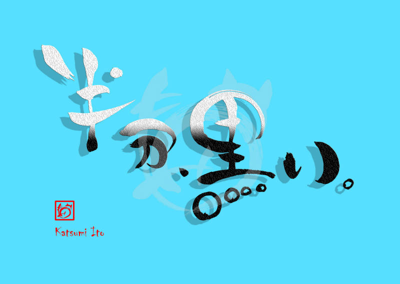 2018年4月11日 / 最終更新日 : 2018年4月11日 Katsumi Ito ドラマ デザイン書道:作品2296「半分、黒い。」半分、黒い。【読み】 はんぶん、くろい。 【意味】 NHK「連続テレビ小説 半分、青い。」 をリスペクトして書きましたm(_ _)m『半分、青い。』は、2018年度上半期放送のNHK「連続テレビ小説」第98作目の作品である。【2296】「半分、黒い。」 関連する作品デザイン書道:作品826「カフェインゼロ」デザイン書道:作品2995「習字」デザイン書道:作品2051「寒ブリ」デザイン書道:作品1241「冬ざれ」デザイン書道:作品2881「浴衣」デザイン書道:作品688「放てば手にみてり」 Tags: ドラマ