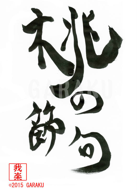 2015年3月3日 / 最終更新日 : 2017年5月12日 Katsumi Ito 2015 デザイン書道:作品251「桃の節句」【今日の書】「作品1578:清明」【昨日の書】「作品1577:鞦韆」 桃の節句【読み】 もものせっく 【意味】 3月3日。 旧暦の3月3日は桃の花が咲く季節であることから、桃の節句とも呼ばれる。 「桃の節句」の起源は平安時代より前で、京の貴族階級の子女が、天皇の御所を模した御殿や飾り付けで遊んで健康と厄除を願った「上巳の節句」が始まりとされている。【251】「桃の節句」 関連する作品デザイン書道:作品509「神無月」デザイン書道:作品457「長月」デザイン書道:作品456「夏」デザイン書道:作品455「涼」デザイン書道:作品453「蛙」デザイン書道:作品452「夕凪」 Tags: 2015, ひな祭り, デザイン書道