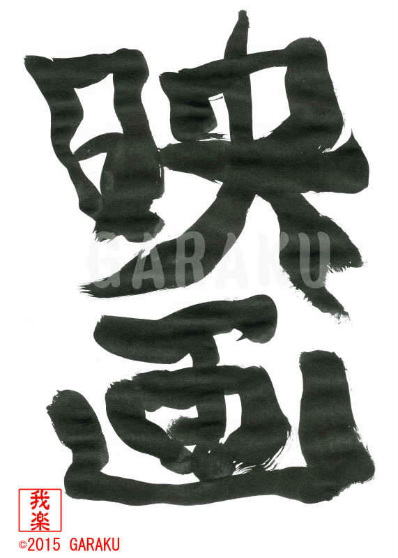 2015年9月13日 / 最終更新日 : 2017年5月13日 Katsumi Ito 二文字 デザイン書道:作品505「映画」【今日の書】「作品1578:清明」【昨日の書】「作品1577:鞦韆」 映画【読み】 えいが 【意味】 フィルムに連続的に写しとった映像を、映写機でスクリーンに映し出し、目の残像現象を利用して形や連続した動きを再現するもの。 古くは活動写真といった。 シネマ。 キネマ。 ムービー。【505】「映画」 関連する作品デザイン書道:作品509「神無月」デザイン書道:作品457「長月」デザイン書道:作品453「蛙」デザイン書道:作品452「夕凪」デザイン書道:作品448「冷奴」デザイン書道:作品447「登山」 Tags: 2015, デザイン書道, ニ文字