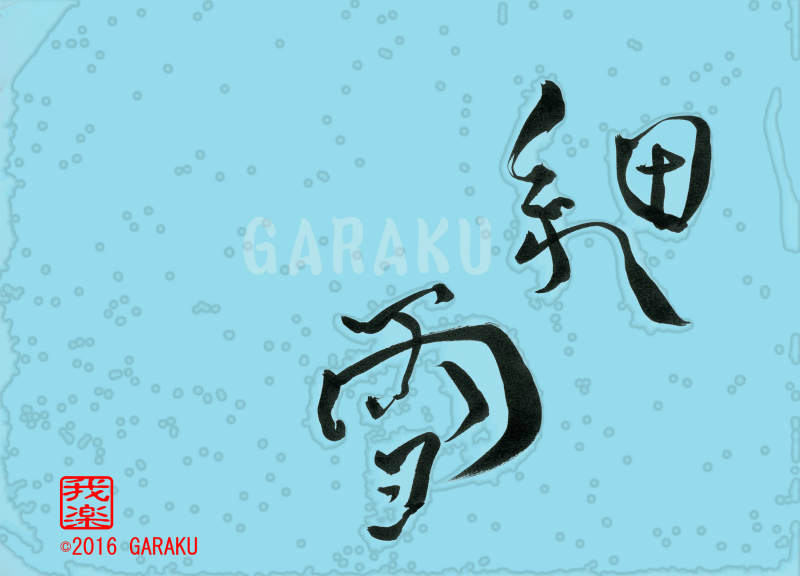 2016年1月8日 / 最終更新日 : 2017年5月14日 Katsumi Ito 二文字 デザイン書道:作品607「細雪」【今日の書】「作品1578:清明」【昨日の書】「作品1577:鞦韆」 細雪【読み】 ささめゆき 【意味】 こまかい雪。 まばらに降る雪。【607】「細雪」 関連する作品デザイン書道:作品625「如月」デザイン書道:作品1393「逸品」デザイン書道:作品1378「寒椿」デザイン書道:作品1374「不動」デザイン書道:作品1369「蝋梅」デザイン書道:作品1359「阿吽」 Tags: 2016, デザイン書道, ニ文字
