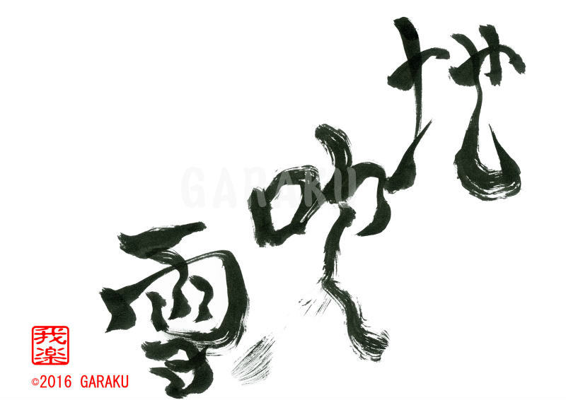 2016年1月23日 / 最終更新日 : 2017年5月14日 Katsumi Ito 三文字 デザイン書道:作品622「地吹雪」【今日の書】「作品1578:清明」【昨日の書】「作品1577:鞦韆」 地吹雪【読み】 じふぶき 【意味】 地表面に積もった雪が強風のために舞い上げられる現象。 舞い上げられる雪の量は,気温が低いほど,また風が強いほど多くなる。【622】「地吹雪」 関連する作品デザイン書道:作品1397「大晦日」デザイン書道:作品1376「銀世界」デザイン書道:作品1370「居酒屋」デザイン書道:作品1327「歌舞伎」デザイン書道:作品1323「御朱印」デザイン書道:作品1276「松竹梅」 Tags: 2016, デザイン書道, 三文字