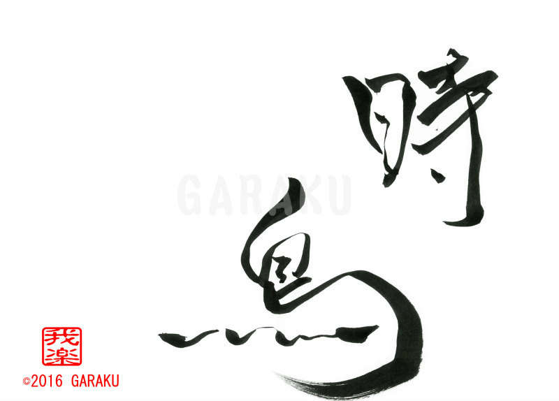 2016年5月15日 / 最終更新日 : 2017年5月14日 Katsumi Ito 二文字 デザイン書道:作品656「時鳥」【今日の書】「作品1578:清明」【昨日の書】「作品1577:鞦韆」 時鳥【読み】 ほととぎす 【意味】 カッコウに似た、かっこう科の鳥。 夏の鳥として詩歌によく歌われてきた。 特に「てっぺんかけたか」と聞こえる鳴き声が賞せられ、伝説も多い。【656】「時鳥」 関連する作品デザイン書道:作品625「如月」デザイン書道:作品1393「逸品」デザイン書道:作品1378「寒椿」デザイン書道:作品1374「不動」デザイン書道:作品1369「蝋梅」デザイン書道:作品1359「阿吽」 Tags: 2016, デザイン書道, ニ文字
