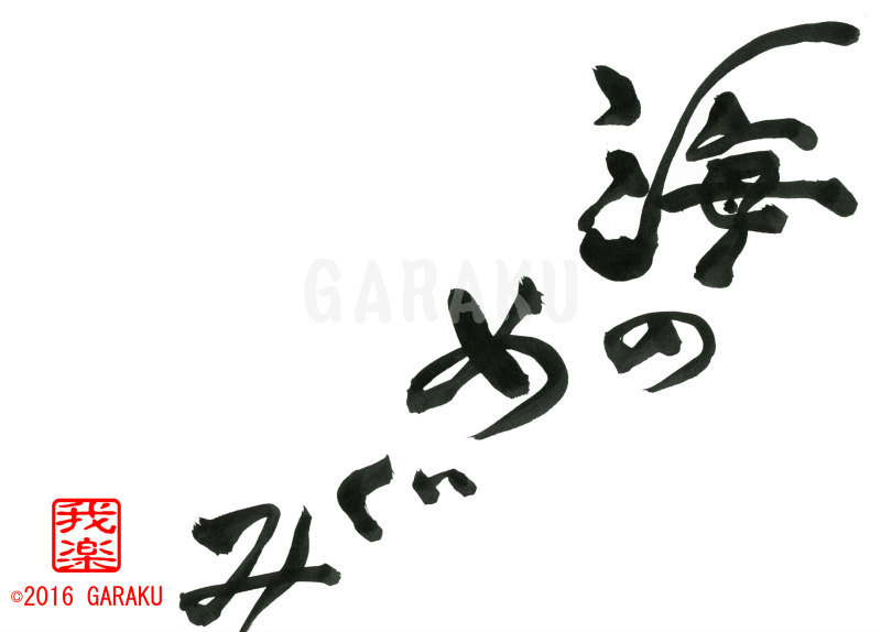 2016年5月23日 / 最終更新日 : 2017年5月14日 Katsumi Ito 2016 デザイン書道:作品677「海のめぐみ」【今日の書】「作品1578:清明」【昨日の書】「作品1577:鞦韆」 海のめぐみ【読み】 うみのめぐみ 【意味】 めぐみ【恵み】 他人や自然などから受けて、幸福や利益をもたらすもの。【677】「海のめぐみ」 関連する作品デザイン書道:作品1317「我、楽しく」デザイン書道:作品1275「命を紡ぐ」デザイン書道:作品1064「浜辺はきれいに」デザイン書道:作品942「夕涼み」デザイン書道:作品918「濃やか」デザイン書道:作品904「雨上がり」 Tags: 2016, デザイン書道, 言葉