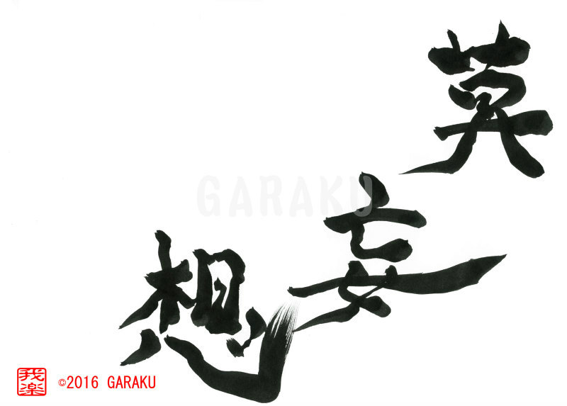 2016年5月28日 / 最終更新日 : 2017年5月14日 Katsumi Ito 2016 デザイン書道:作品696「莫妄想」【今日の書】「作品1578:清明」【昨日の書】「作品1577:鞦韆」 莫妄想【読み】 まくもうそう 【意味】 禅語:過去や未来を思い悩まず、今に集中する。【696】「莫妄想」 関連する作品デザイン書道:作品829「主人公」デザイン書道:作品825「一大事」デザイン書道:作品731「無功徳」デザイン書道:作品713「喫茶去」デザイン書道:作品686「放下著」デザイン書道:作品1397「大晦日」 Tags: 2016, デザイン書道, 三文字, 禅語