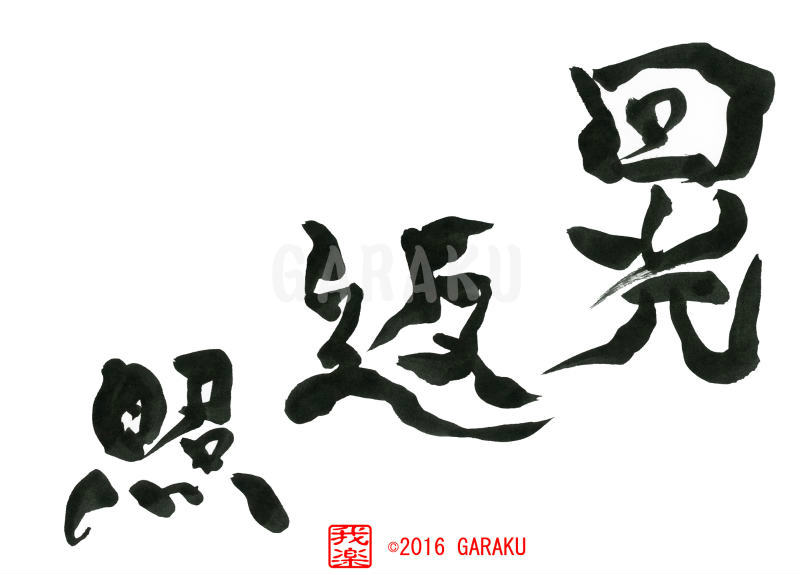 2016年6月4日 / 最終更新日 : 2017年5月20日 Katsumi Ito 禅語 デザイン書道:作品751「回光返照」【今日の書】「作品1578:清明」【昨日の書】「作品1577:鞦韆」 回光返照【読み】 えこうへんしょう 【意味】 禅語:外ばかり向けていた目を自分の内側に【751】「回光返照」 関連する作品デザイン書道:作品1026「鳥啼山更幽」デザイン書道:作品1023「生我者父母 成我者朋友」デザイン書道:作品1021「死ぬ時節には死ぬがよく候」デザイン書道:作品1018「一切有為法 如夢幻泡影」デザイン書道:作品1016「相送当門有脩竹 為君葉葉起清風」デザイン書道:作品1008「竹影、階を掃って塵動せず 月、潭底を穿つも水に痕無し」 Tags: 禅語