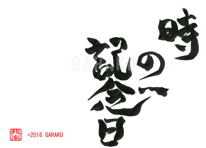 2016年6月7日 / 最終更新日 : 2017年5月14日 Katsumi Ito 2016 デザイン書道:作品793「時の記念日」【今日の書】「作品1578:清明」【昨日の書】「作品1577:鞦韆」 時の記念日【読み】 ときのきねんび 【意味】 6月10日. 時の記念日. 東京天文台と生活改善同盟会が1920年に、「時間をきちんと守り、欧米並みに生活の改善・合理化を図ろう」と制定。【793】「時の記念日」 関連する作品デザイン書道:作品625「如月」デザイン書道:作品1400「除夜の鐘」デザイン書道:作品1399「年越し蕎麦」デザイン書道:作品1398「鏡餅」デザイン書道:作品1397「大晦日」デザイン書道:作品1396「灯す」 Tags: 2016, デザイン書道, 記念日