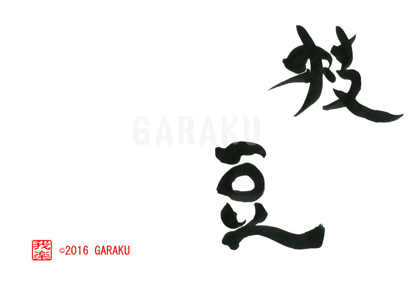 2016年6月7日 / 最終更新日 : 2017年4月30日 Katsumi Ito 二文字 デザイン書道:作品804「枝豆」【今日の書】「作品1578:清明」【昨日の書】「作品1577:鞦韆」 枝豆【読み】 えだまめ 【意味】 未成熟で青いうちの大豆を収穫したもの。【804】「枝豆」 関連する作品デザイン書道:作品625「如月」デザイン書道:作品1393「逸品」デザイン書道:作品1378「寒椿」デザイン書道:作品1374「不動」デザイン書道:作品1369「蝋梅」デザイン書道:作品1359「阿吽」 Tags: 2016, デザイン書道, ニ文字, 野菜