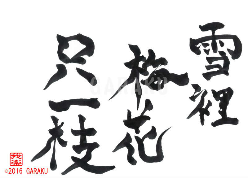 2016年6月10日 / 最終更新日 : 2017年5月20日 Katsumi Ito 禅語 デザイン書道:作品855「雪裡梅花只一枝」【今日の書】「作品1578:清明」【昨日の書】「作品1577:鞦韆」 雪裡梅花只一枝【読み】 せつりのばいかただいっし 【意味】 禅語:苦難に耐えてこそ真実をつかむことができる。【855】「雪裡梅花只一枝」 関連する作品デザイン書道:作品1026「鳥啼山更幽」デザイン書道:作品1023「生我者父母 成我者朋友」デザイン書道:作品1021「死ぬ時節には死ぬがよく候」デザイン書道:作品1018「一切有為法 如夢幻泡影」デザイン書道:作品1016「相送当門有脩竹 為君葉葉起清風」デザイン書道:作品1008「竹影、階を掃って塵動せず 月、潭底を穿つも水に痕無し」 Tags: 禅語