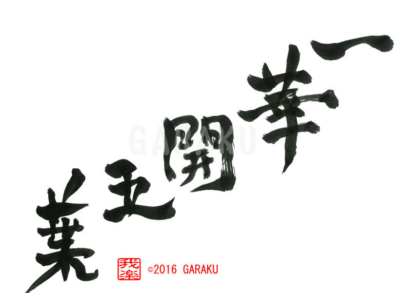 禅語:一つの花は五弁の花びらを開いて咲き実を結ぶように、人間も五つの知恵(心)を持たないと、正しく才能を開花できないし、次代にそれを継ぐことも出来ないという意味です。